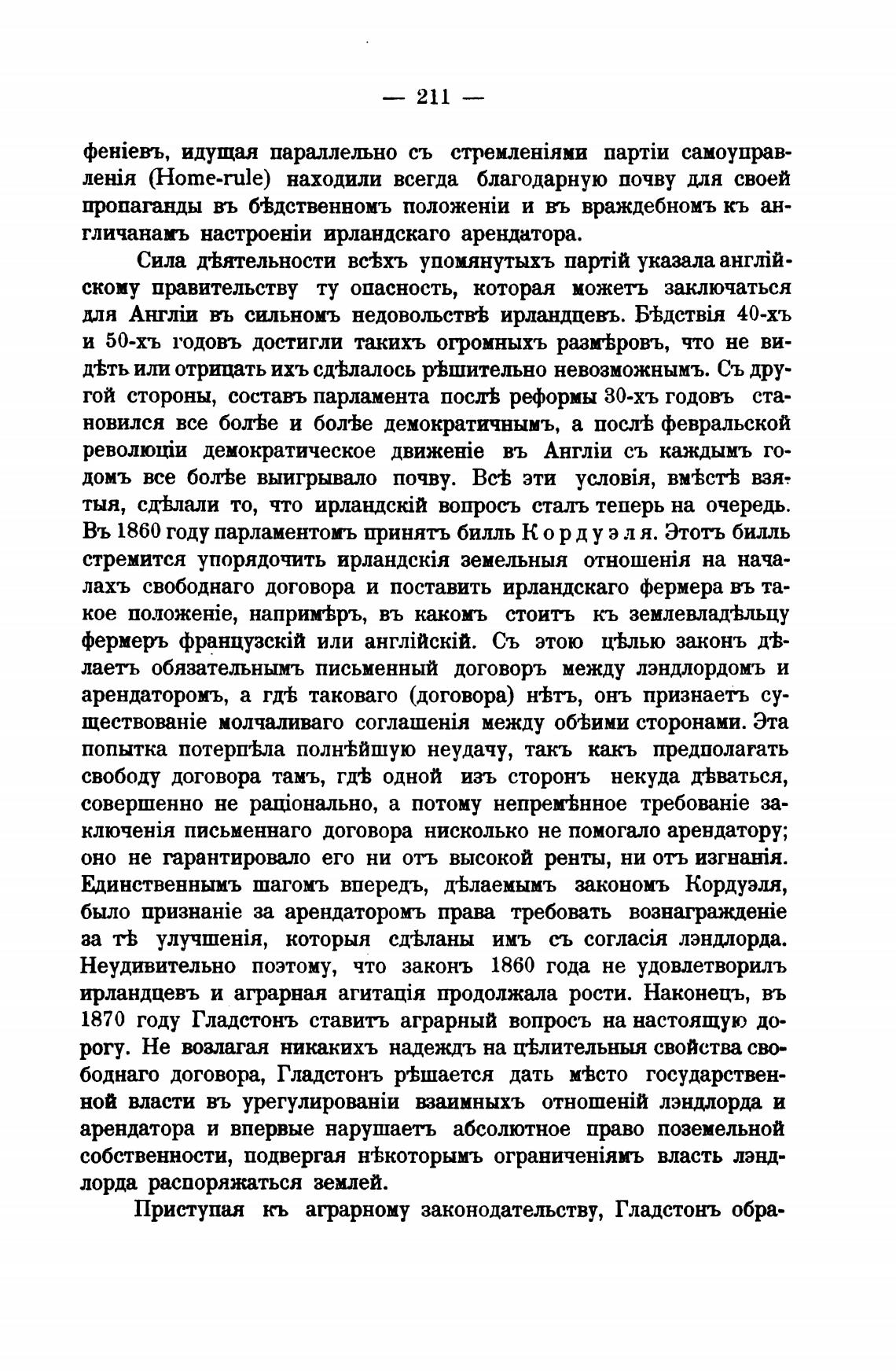 Приступая кь аграрному законодательству, Гладстонъ обра-