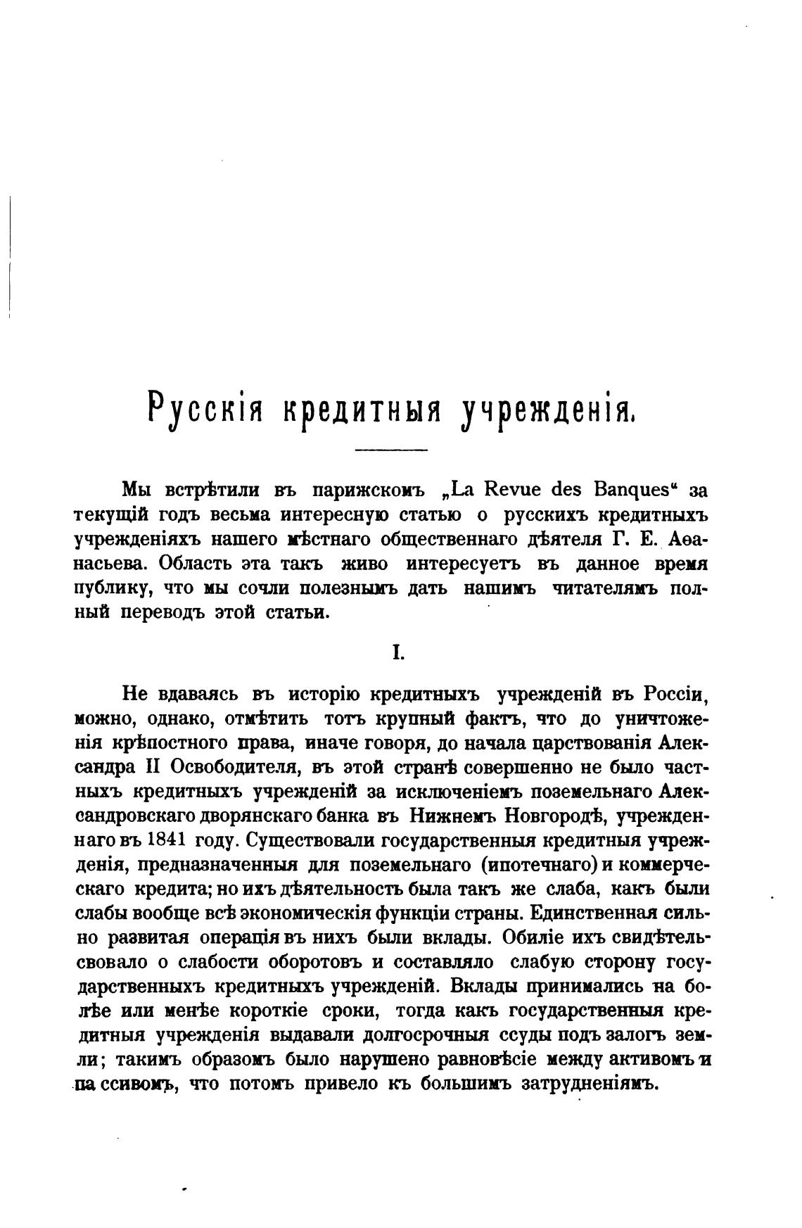 годъ весьма интересную статью о русскихъ кредитныхъ