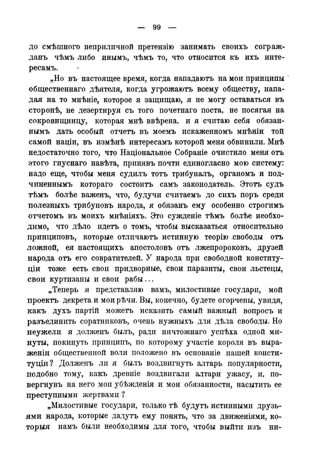 полезныхъ трибуновъ народа, я обязанъ ему особенно строгимъ
