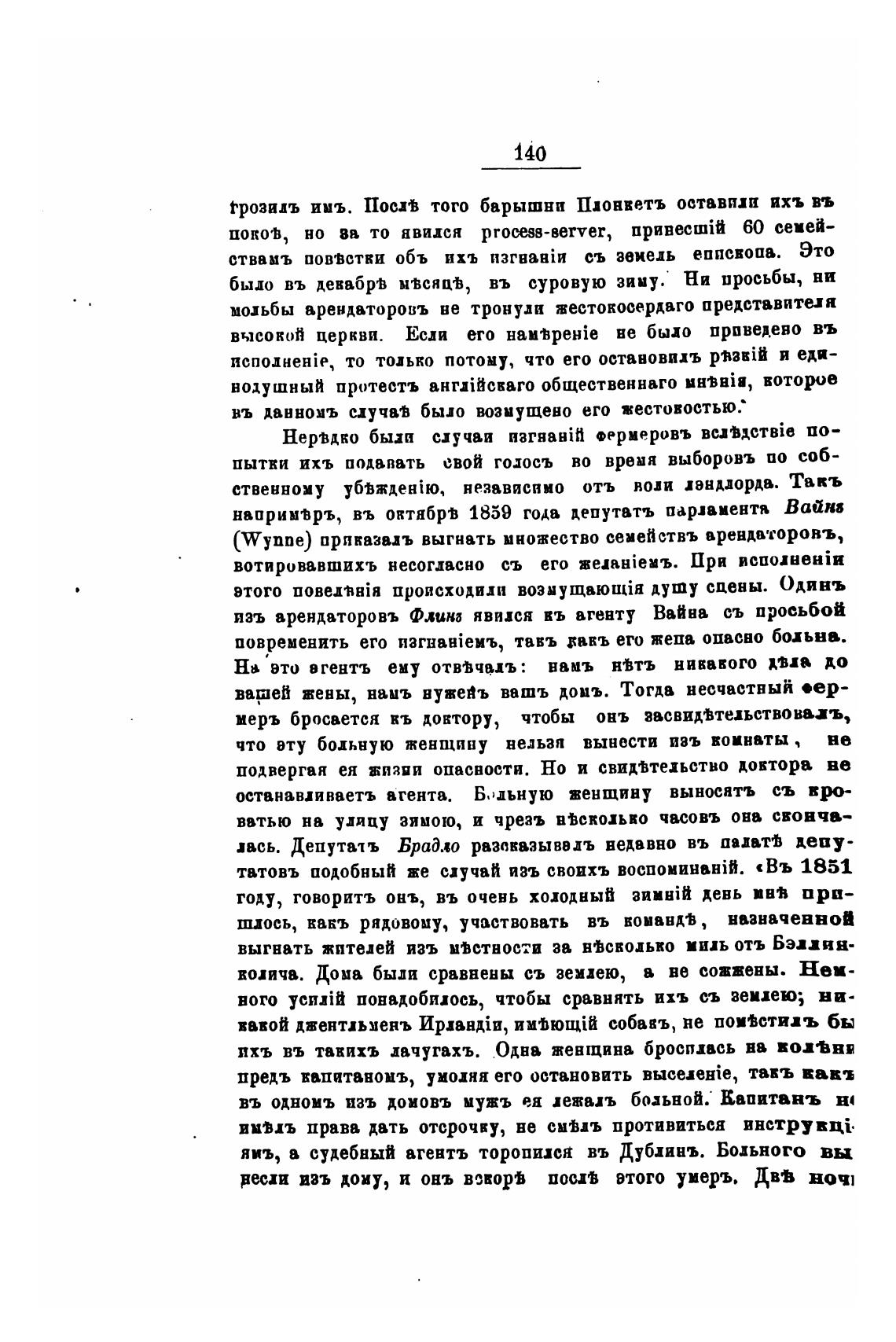 (Wynne) пряказвлъ выгнать множество сеиепетвъ арендаторовъ,