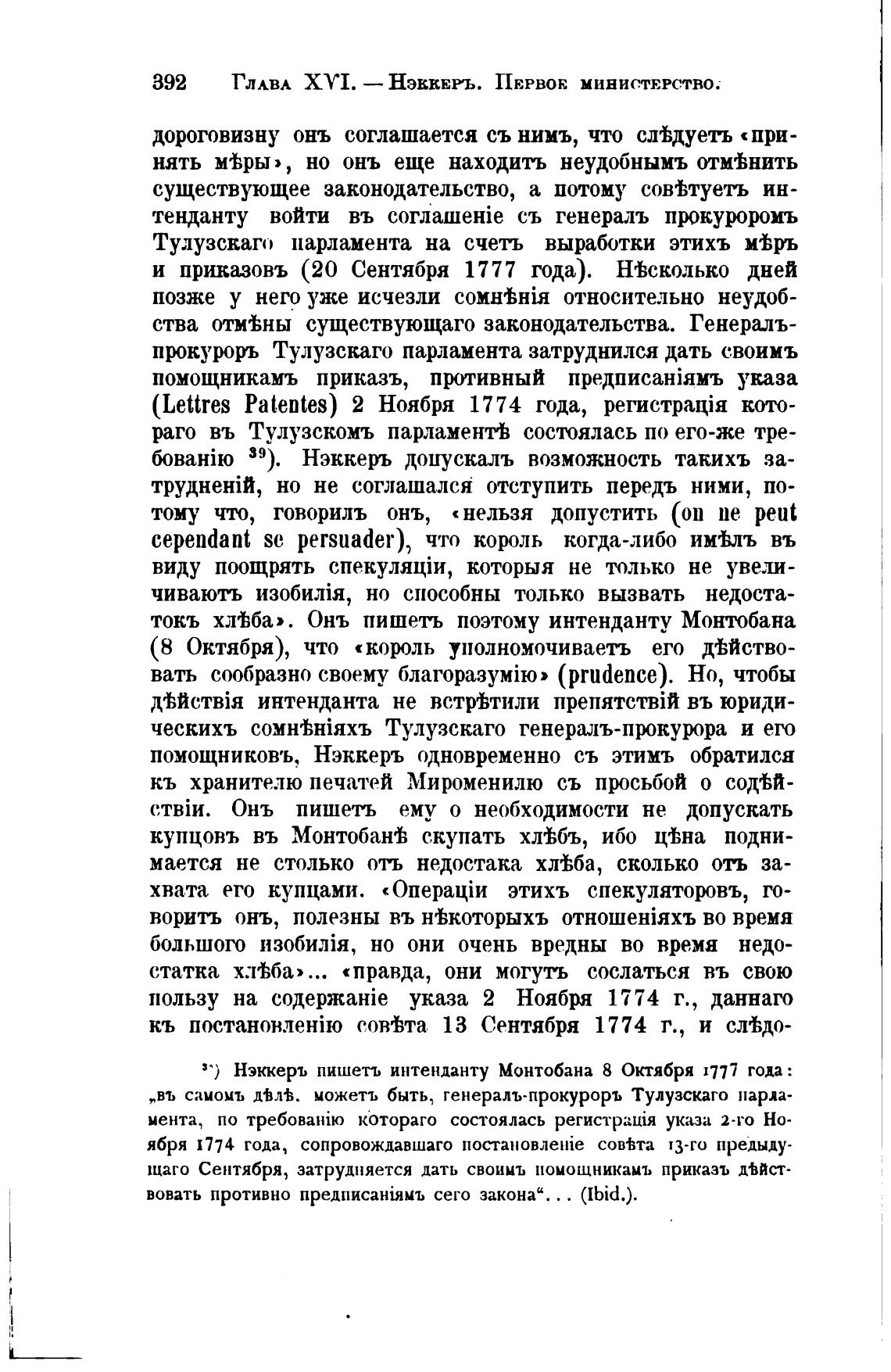 3') Нэккеръ пишеть интенданту Монтобана 8 Октября 1777 года :