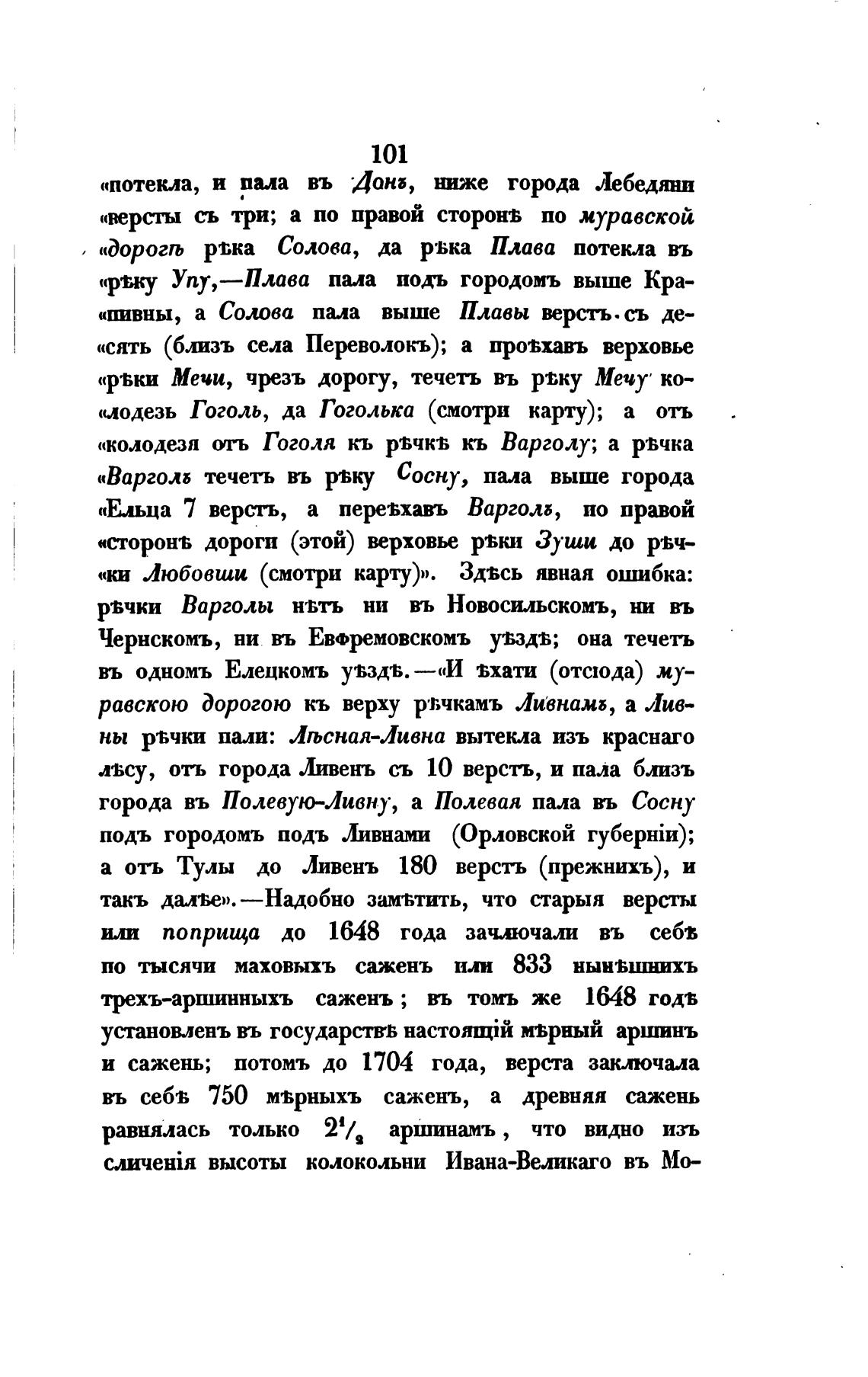 а отъ Тулы до Ливень 180 версть (прежнихъ), и