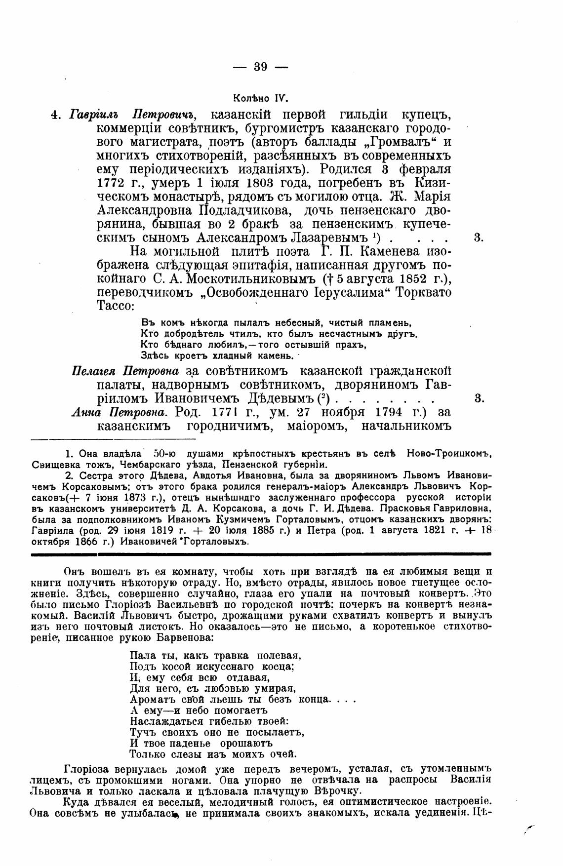 въ казанскомъ университет% Д. А. Корсакова, а дочь Г. И. Д±дева. Прасковья Гавриловна,