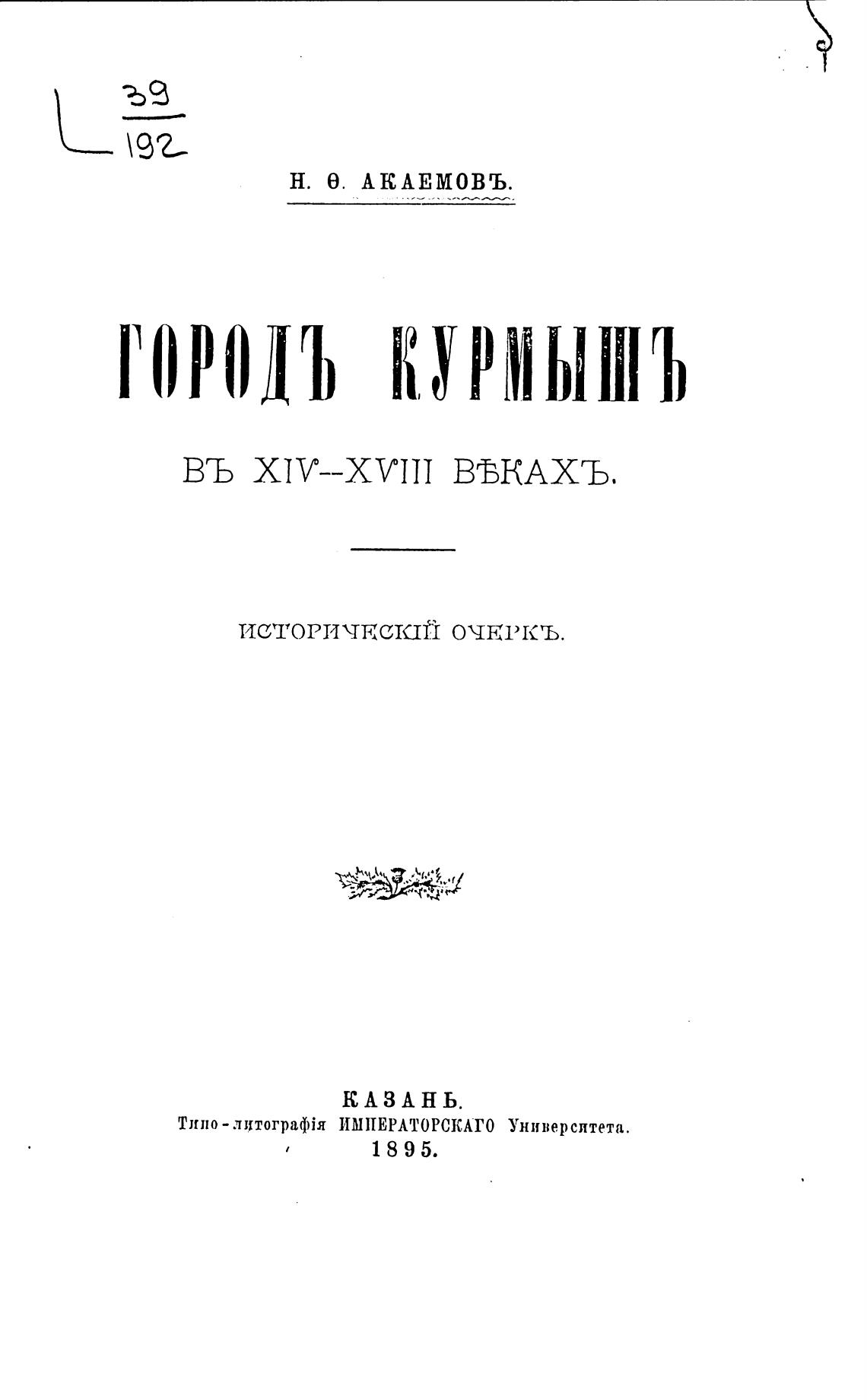 Город Курмыш в XIV-XVIII веках. Исторический очерк. - Акаемов Н. Ф.