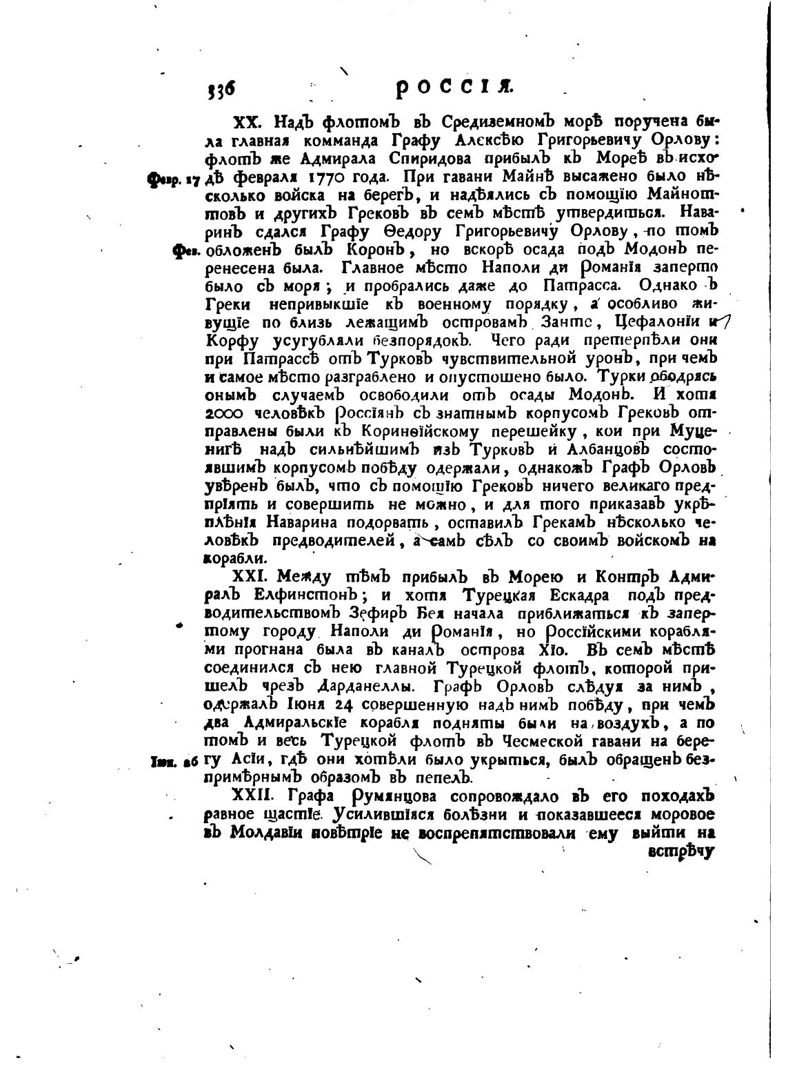флотЪ те Адмирала Спиридова прибылЪ кь Моређ вЪ.исхо•