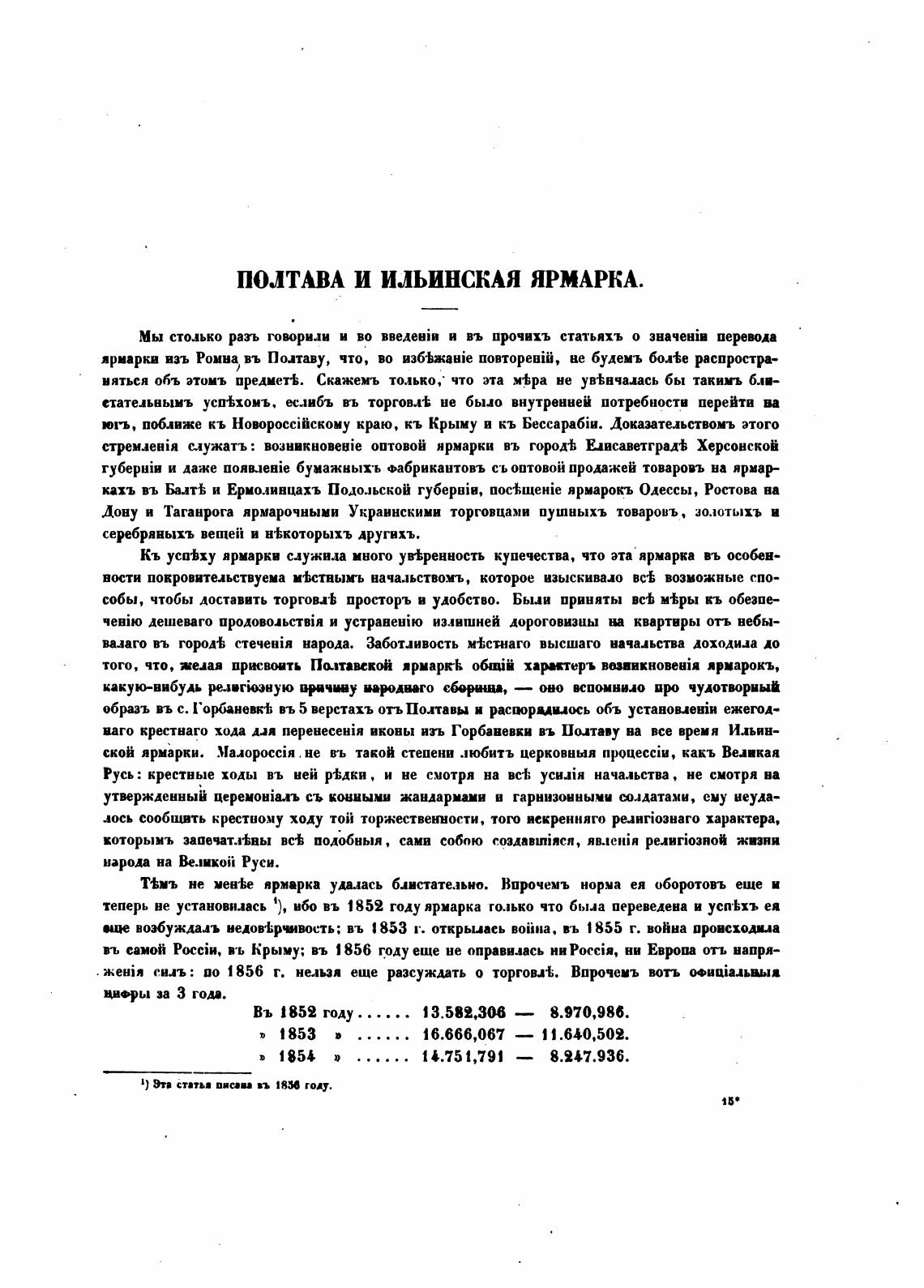 теперь не установилась 1), ибо въ 1852 году ярмарка только что была переведена и усп•Ьхъ ея