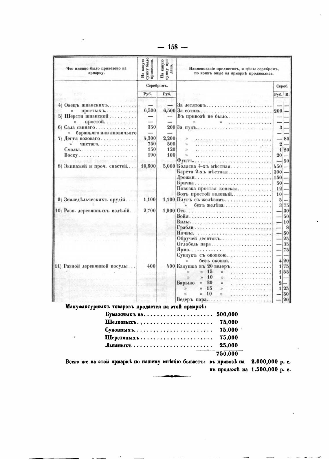 Мануфактурныхъ товаровъ продается ва этой ярмарк±: