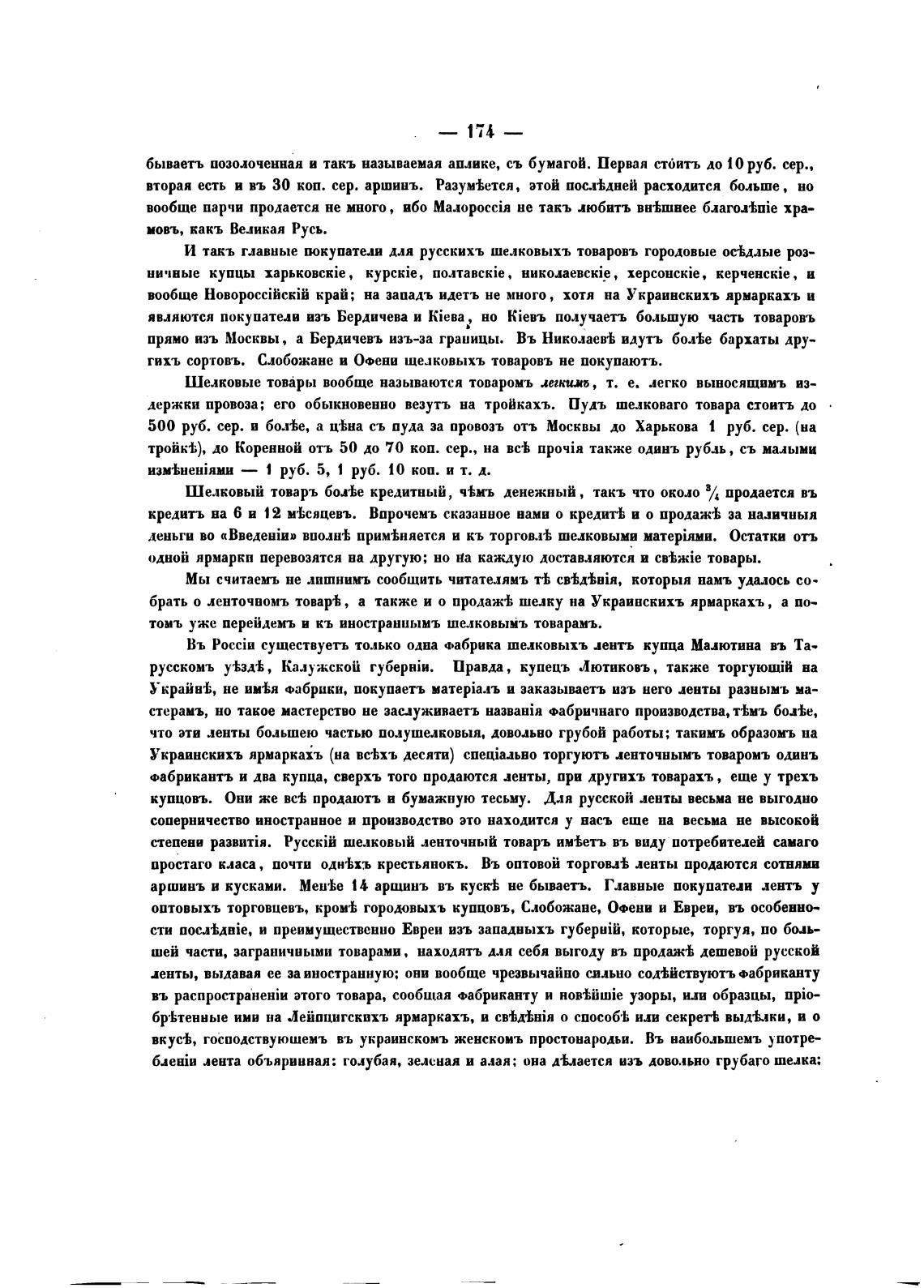 гихъ сортовъ. Сл“жане и Офени щелковыхъ товаровъ не покупаютъ.