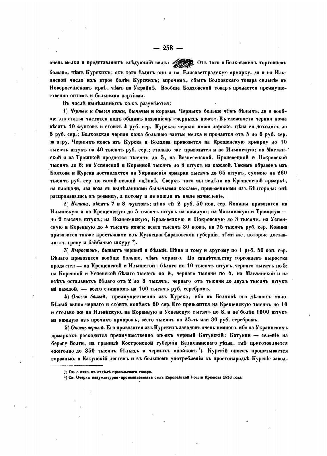 5 руб. сер.; Болховская черпая кожа большею частью мелка и продается отъ 5 до 6 руб. сер.