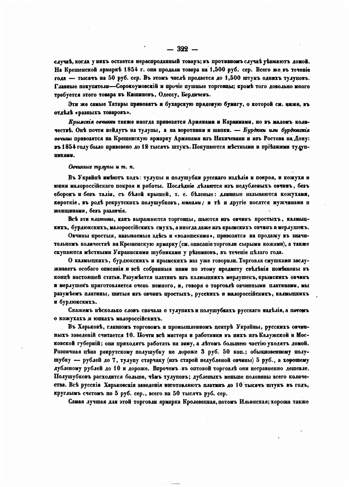 конц•Ь настоят“ статьи. Разу“тся платвнъ взъ калмыцкихъ менушекъ, крымсквхъ овчинъ
