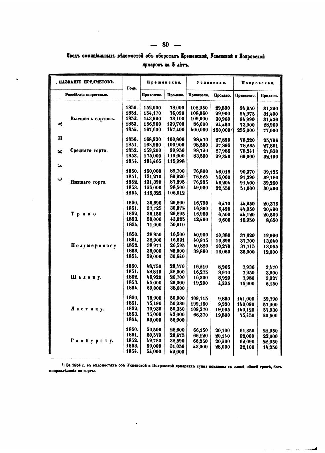 Сводъ миц1иьвыхъ втдоиоетвй объ обороти• Ерещевиой, Yuuezoi и Иокровсхой