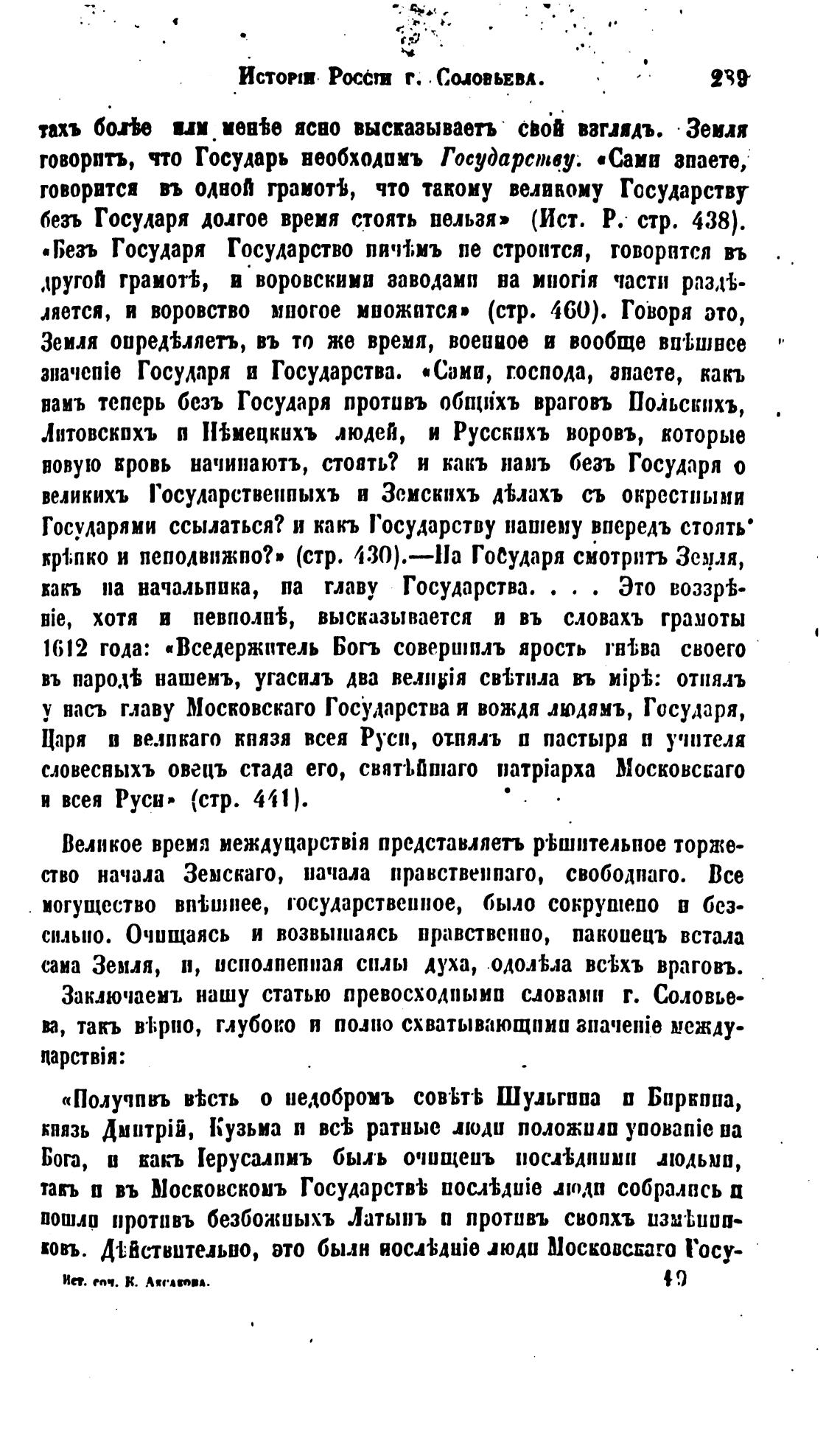 безъ Государя долгое время стоять нельзя» (Ист. Р. стр. 438).