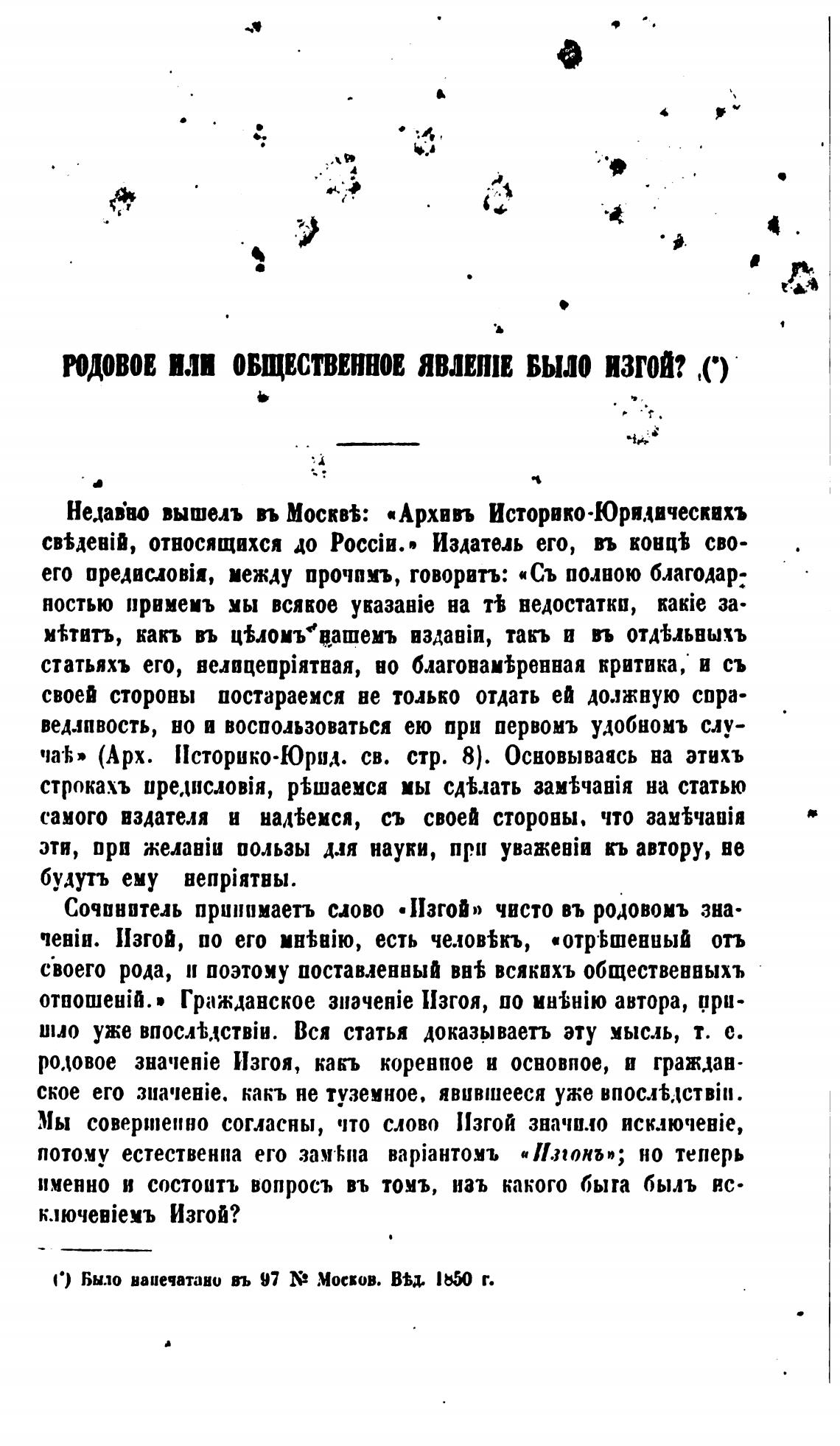 Сочпвптиь пршшмаетъ ново •Изгой» чисто въ родовомъ зна•