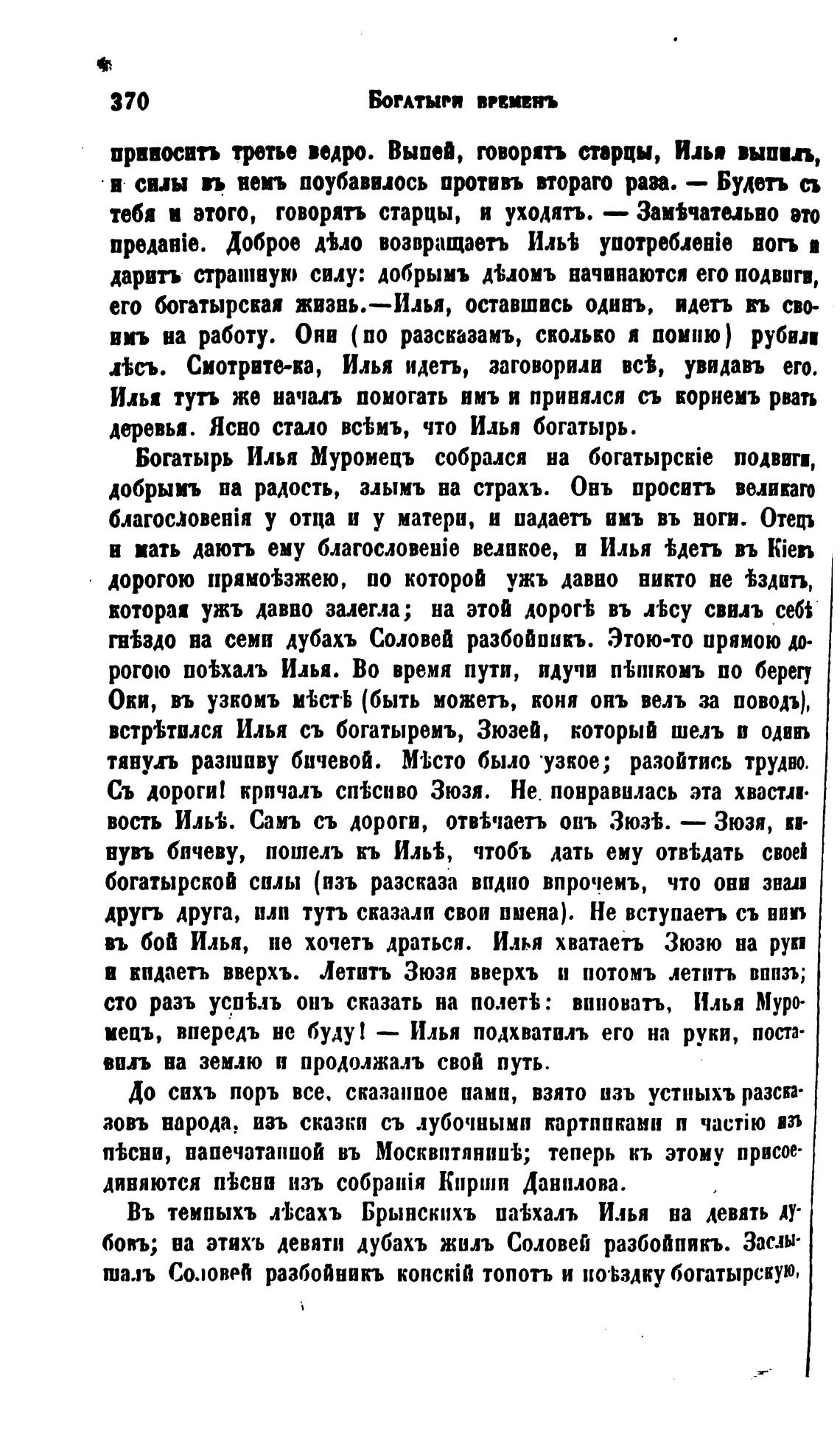 ero богатырская жвзвь.—Илья, оставшись одивъ, идетъ гъ сво-