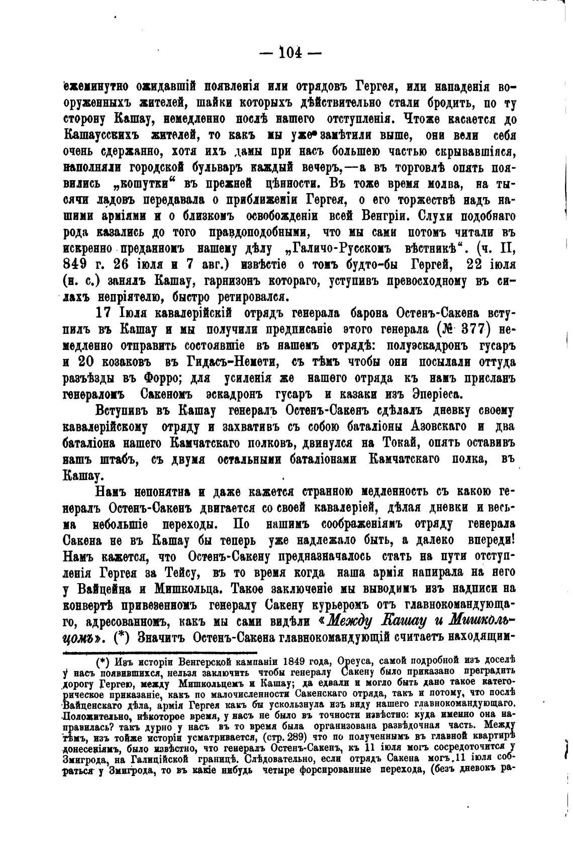 Вступивъ въ Кашау генераль Остенъ-0акенъ сдјлалъ дневку своему