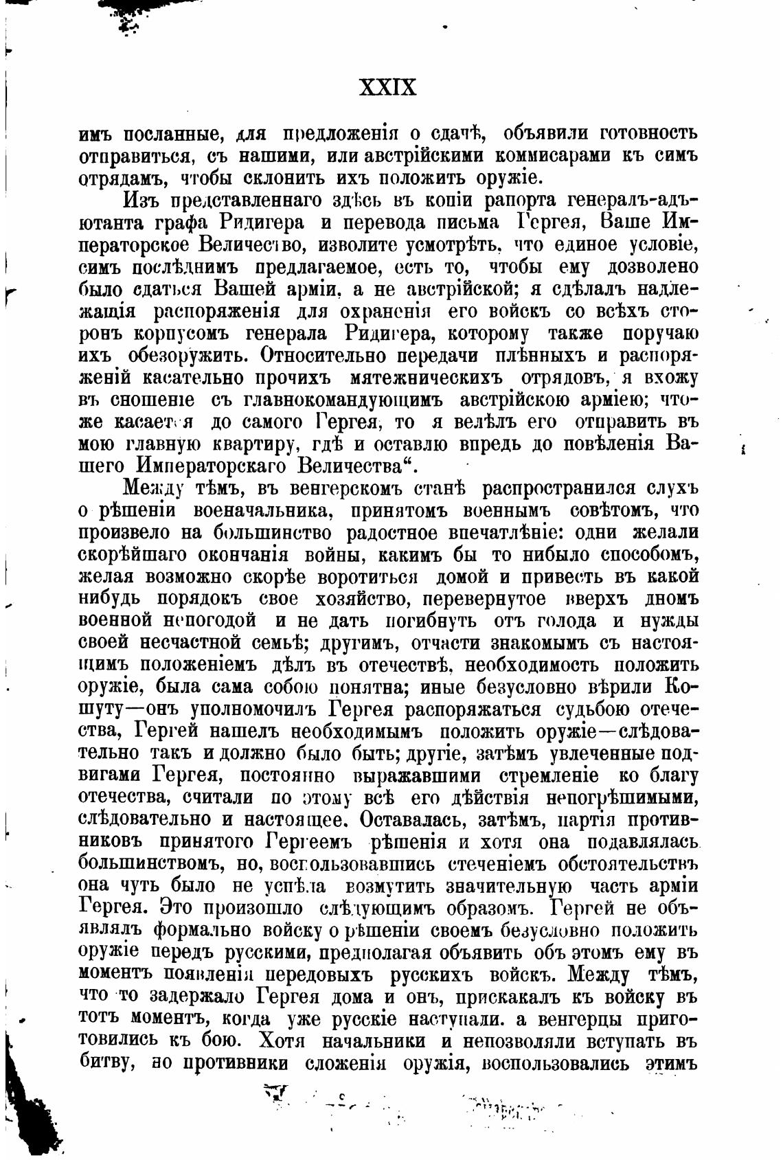 ства, Гергей нашелъ необходимымъ положить