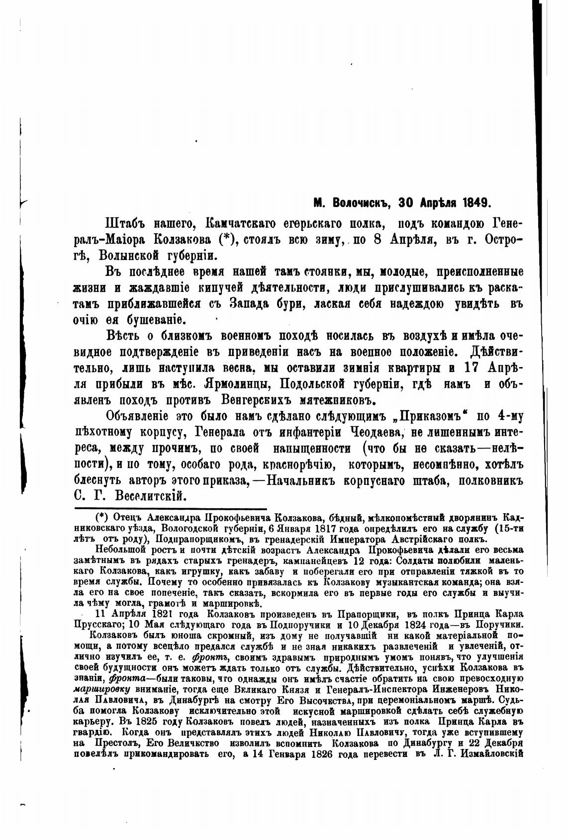 М. Волочискъ, 30 Апр%ля 1849.