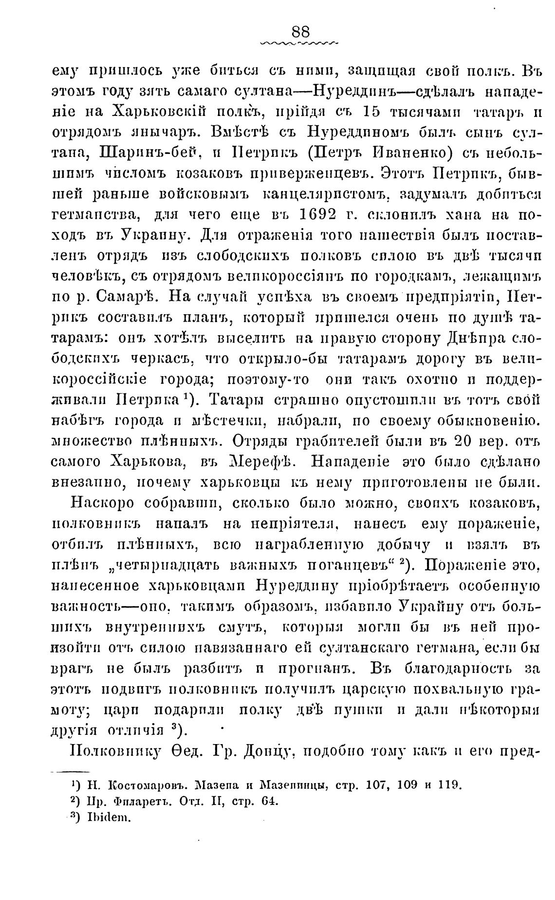 1) Н. Костомаровъ. Мазепа и Мазепинцы, стр. 107, 109 и 119.