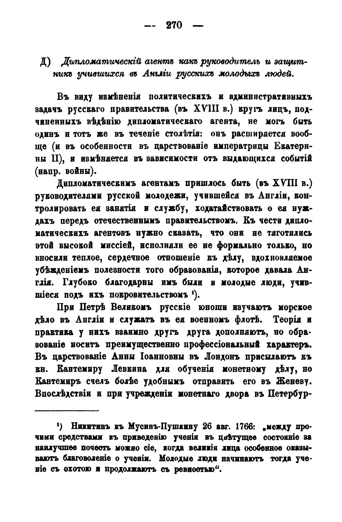 1) Нивитинъ въ Мусивъ-Пушвиву 26 авг. 1766: „между пр-