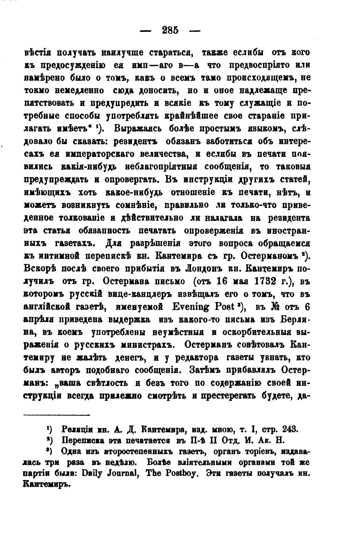 въ интимной переписвђ вн. Кантемира съ гр. Остермавомъ
