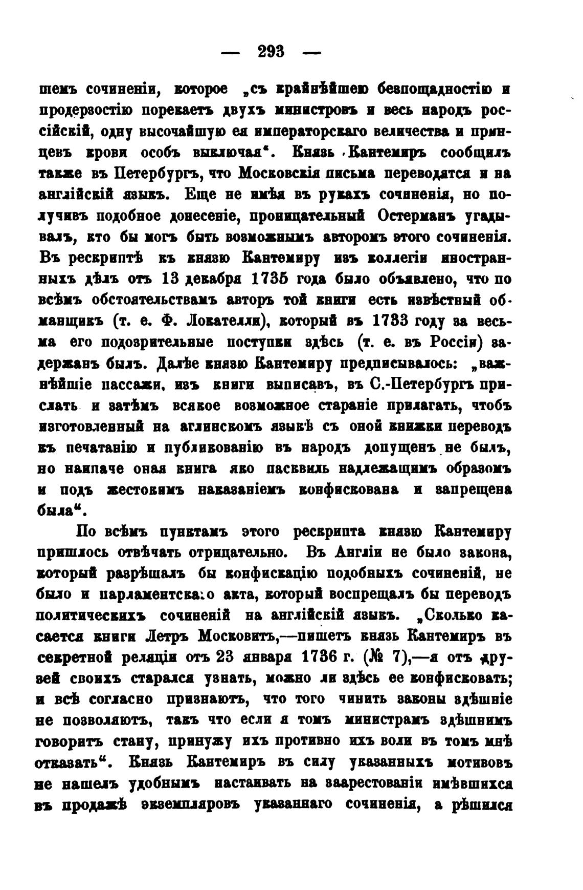 Въ ресврипт± въ внавю Кантемиру изъ волле1Ји иностран-