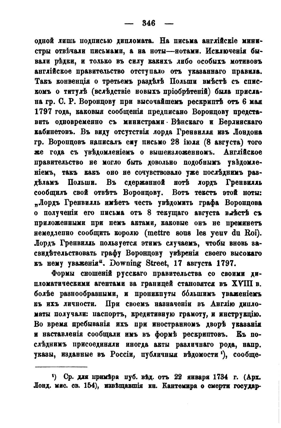 „Лордъ Гренвилль ийетъ честь уйдомить графа Воронцова