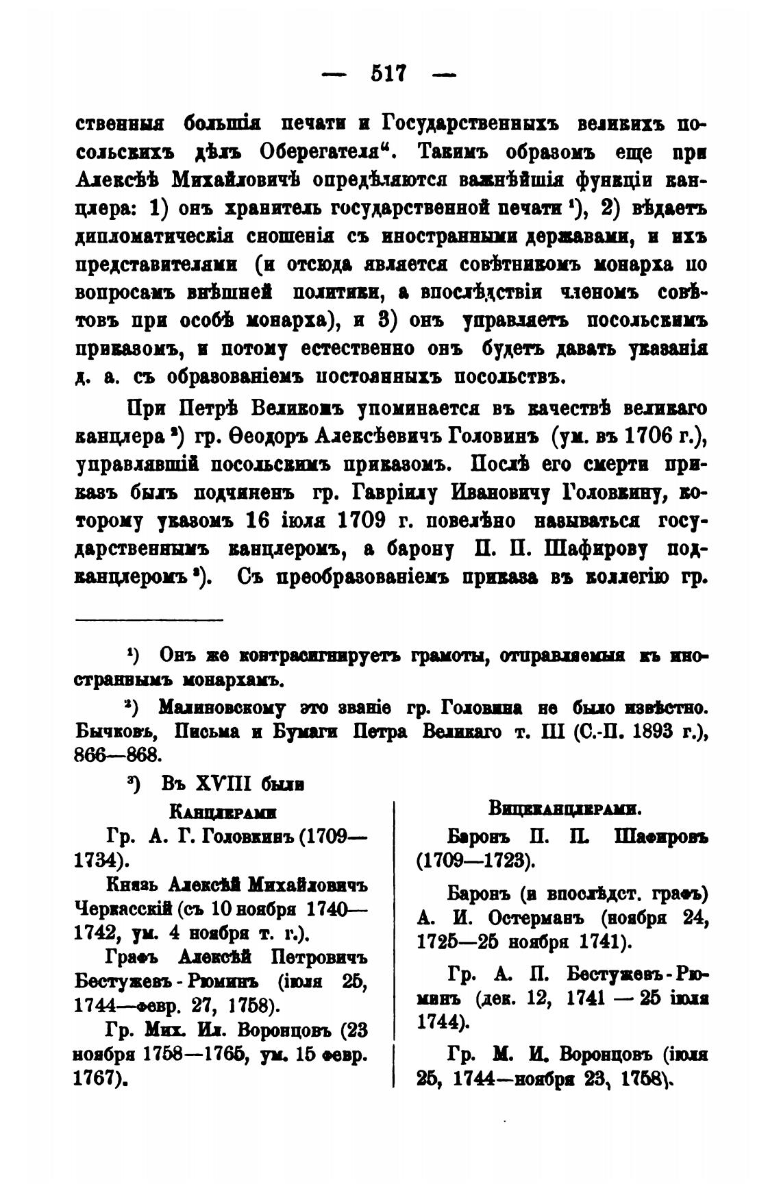 дарственнымъ ванцлеромъ, а барону П. П. Шафирову под-