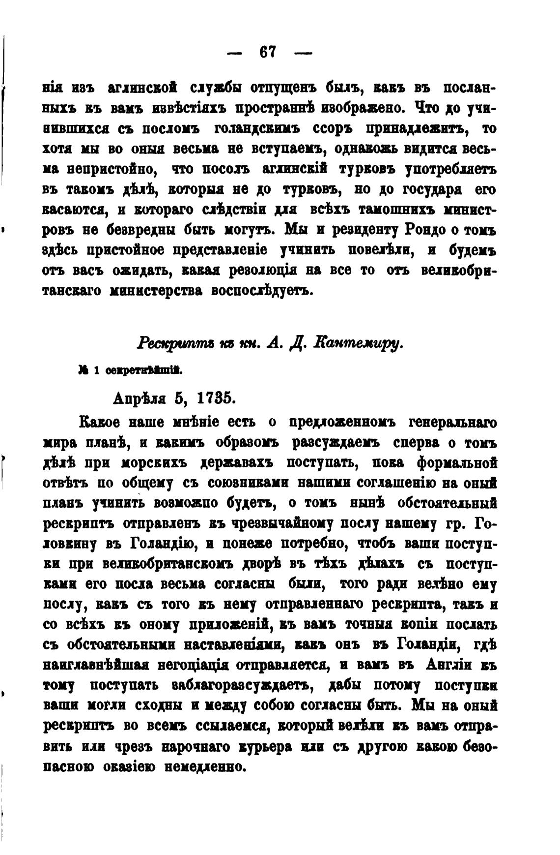 ресвриптъ отправлень въ чрезвычайному послу нашему гр. Го-