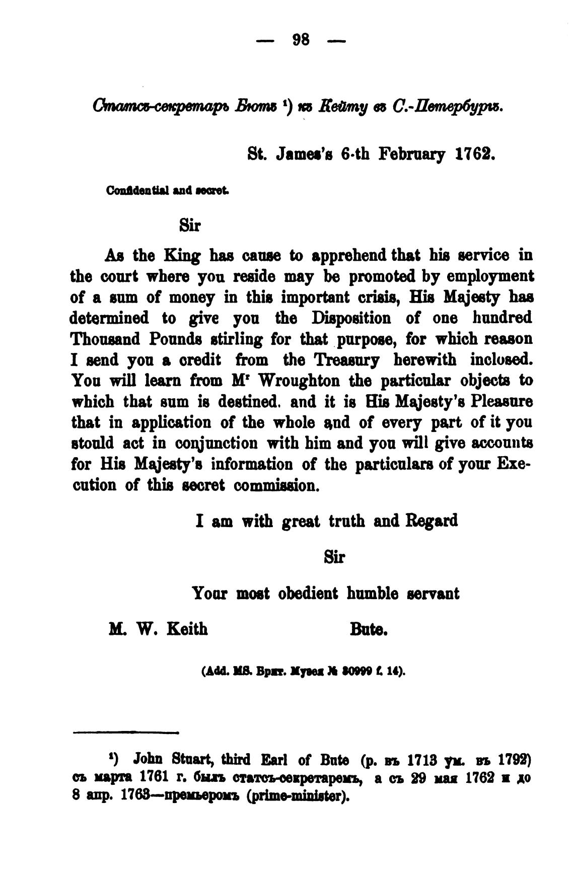St. Jama's 6•th February 1762.