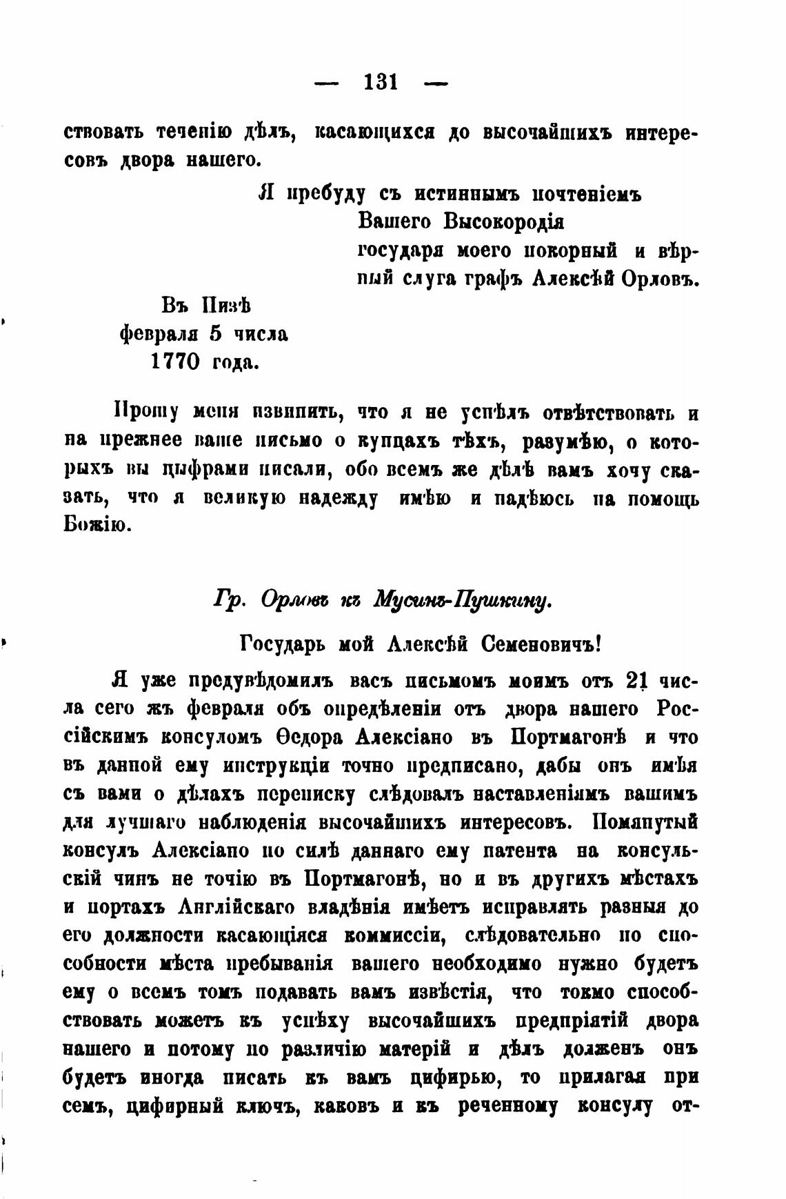 Гр. Орлова и Муынз-Пушкину.