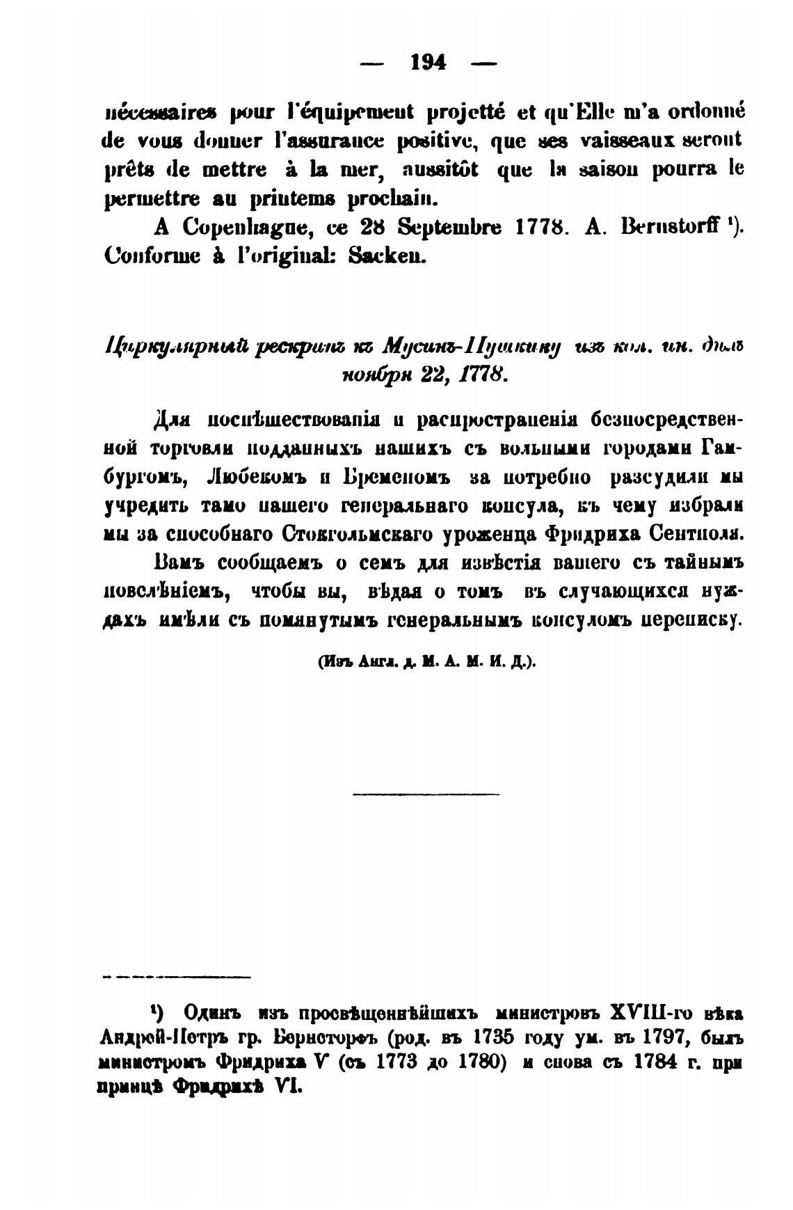 А Copenhague, се 28 &4ЖешЬге 1778. А. lhrnstorf 1).