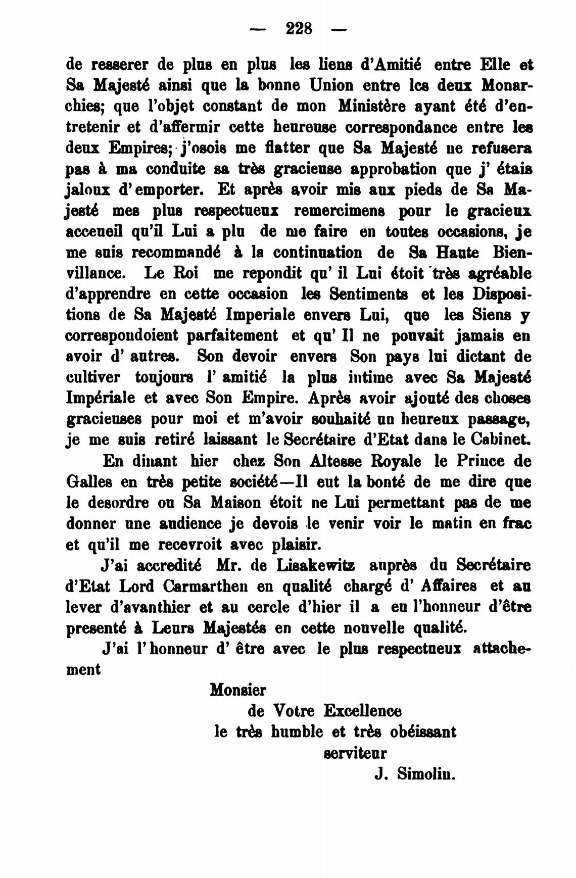 J'ai accredit6 Mr. de Lisakewib anprbs du
