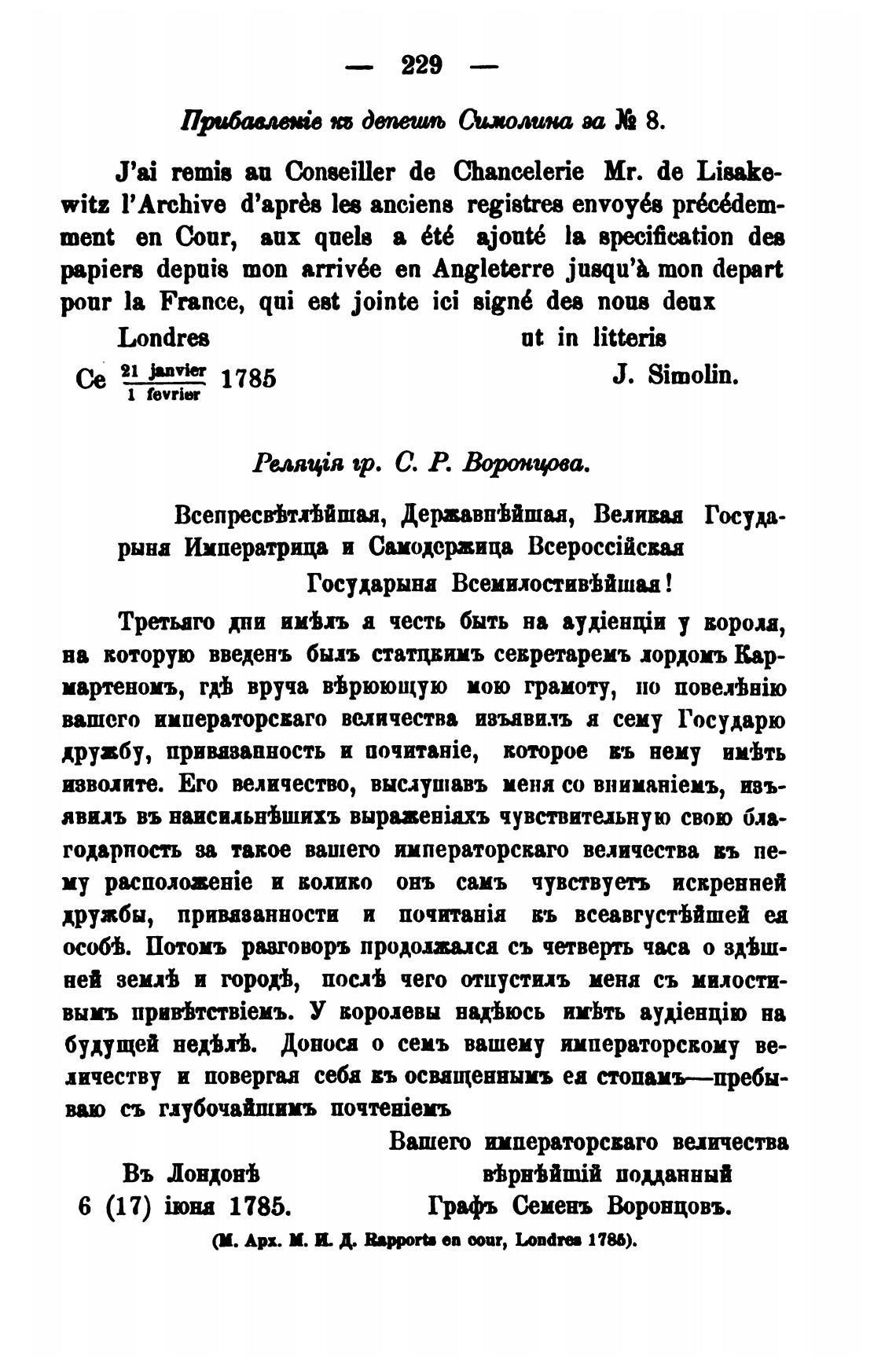 J'ai remis аи Conseiller de Chancelerie Mr. de Lisake-