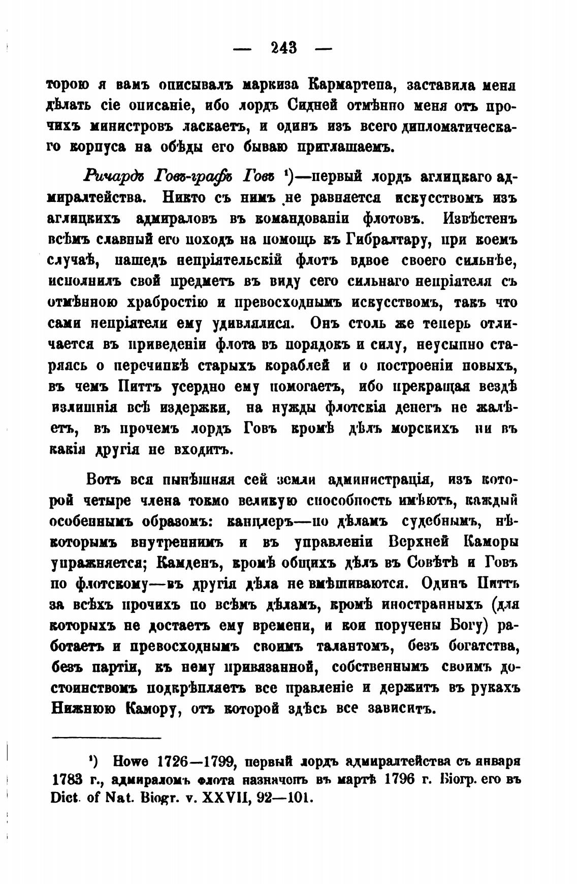 еть, въ прочемъ лордъ Говъ вром'Ь Д'Ьлъ морсвихъ ни въ