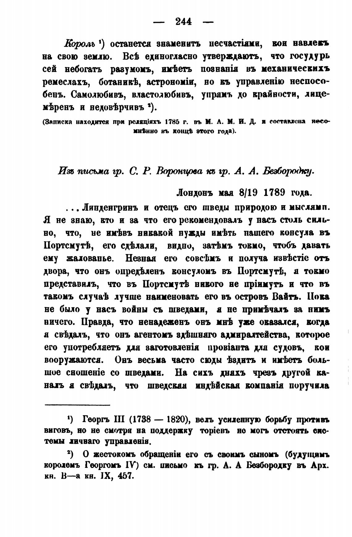 Лондонъ маа 8/19 1789 года.