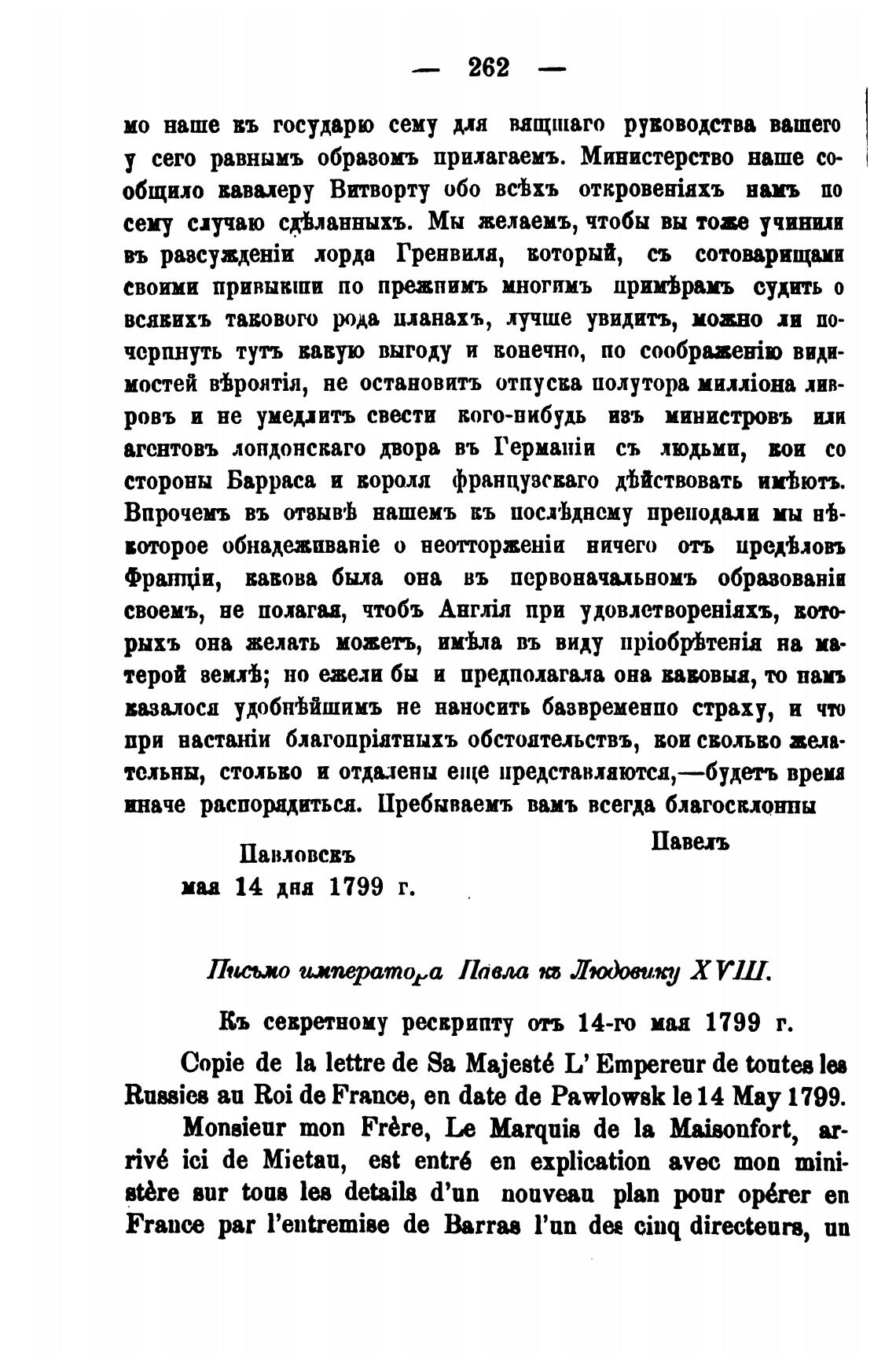 Russies аи Roi de France, еп date de Pawlowsk le 14 Мау 1799.