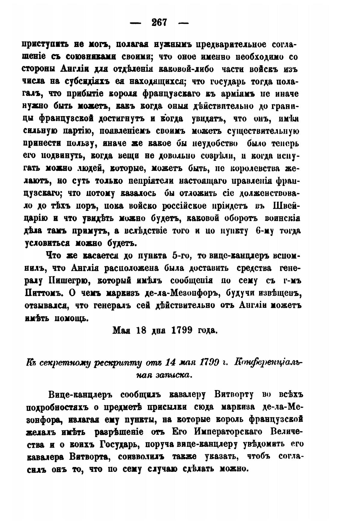 Ка секретному ресрипту от.б 14 хая 1799 а. Кпфриипалъ-