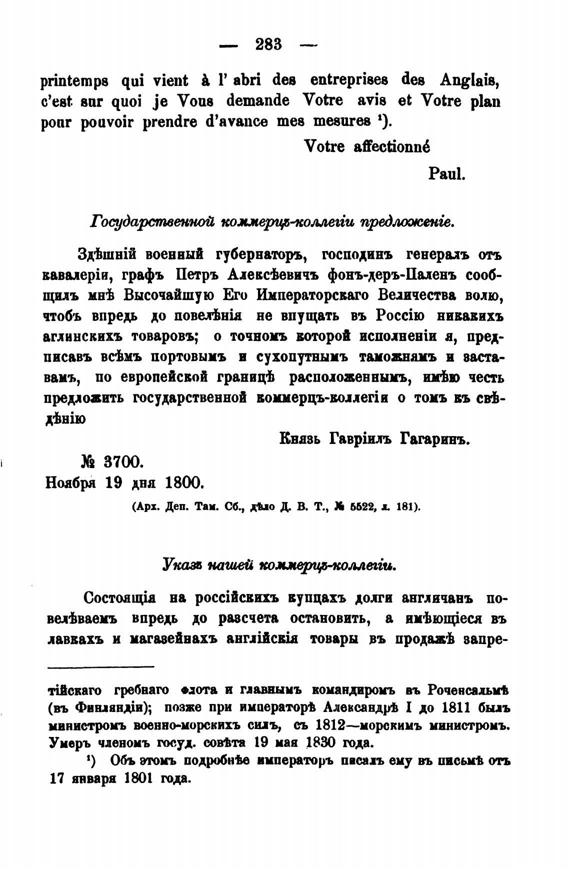 графъ Петръ АлеМевичь фонъ-деръ-Паленъ сооб-