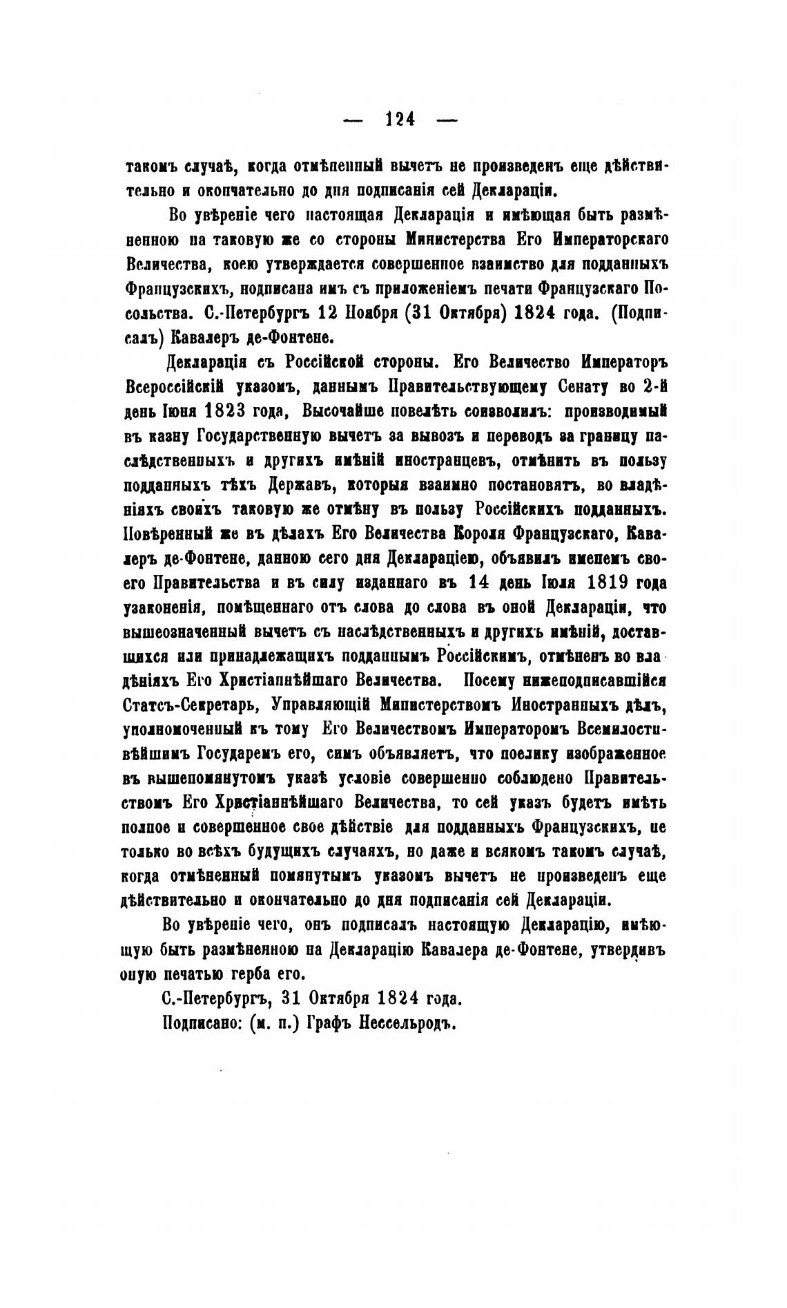 созьства. С.•Петер6ургъ 12 Ноабря (31 Овтября) 1824 года. (Подпи-