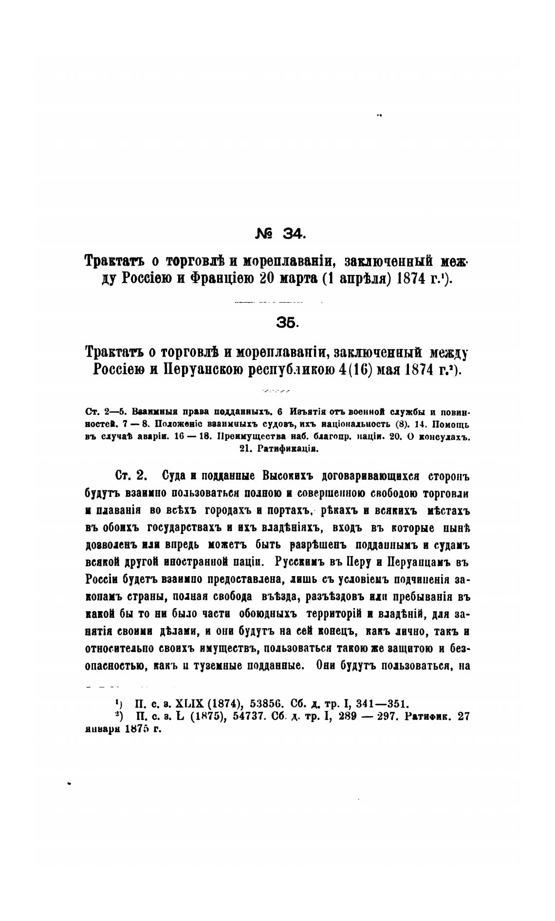 и Перуанскою республикою 4(16) мая 1874 гг).
