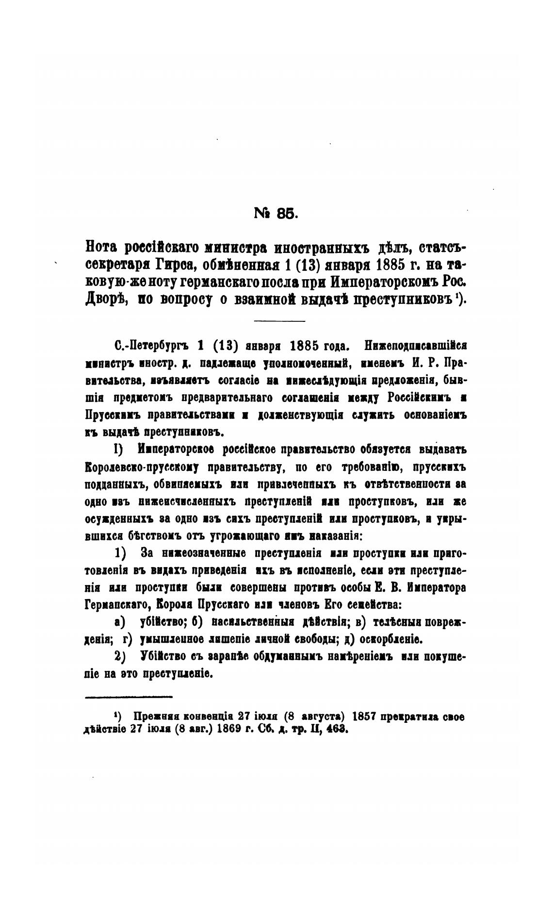 секретаря Гирса, обм1ненная 1 (13) января 1885 г. на та-