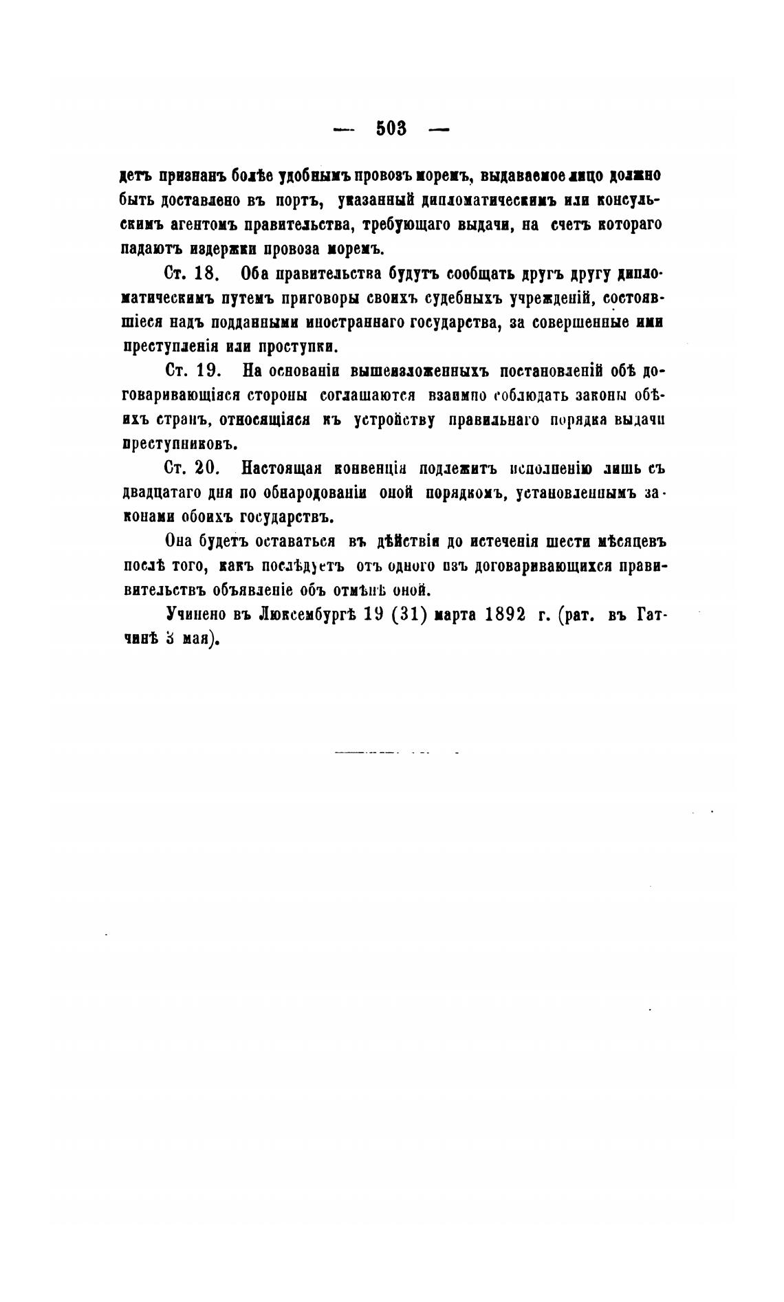 Учинено въ ЛюксембургВ 19 (31) марта 1892 г. (рат. въ Гат-