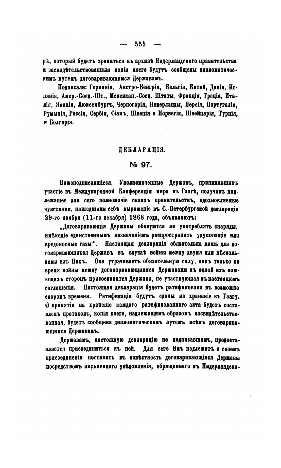 скоромь времени. Ратифивакјв будутъ сданы на xpaHeHie въ Гаагу.