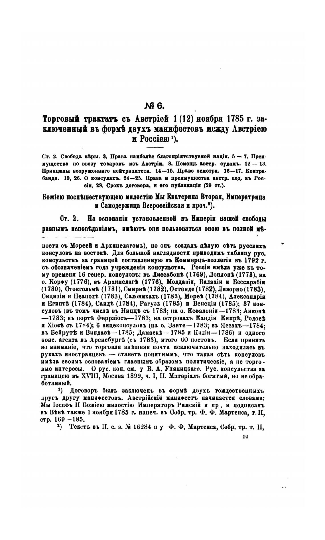 въ также 1 нонбря 1785 г. ваиеч. въ Собр. тр. Ф. Ф. Мартенса, т. П,