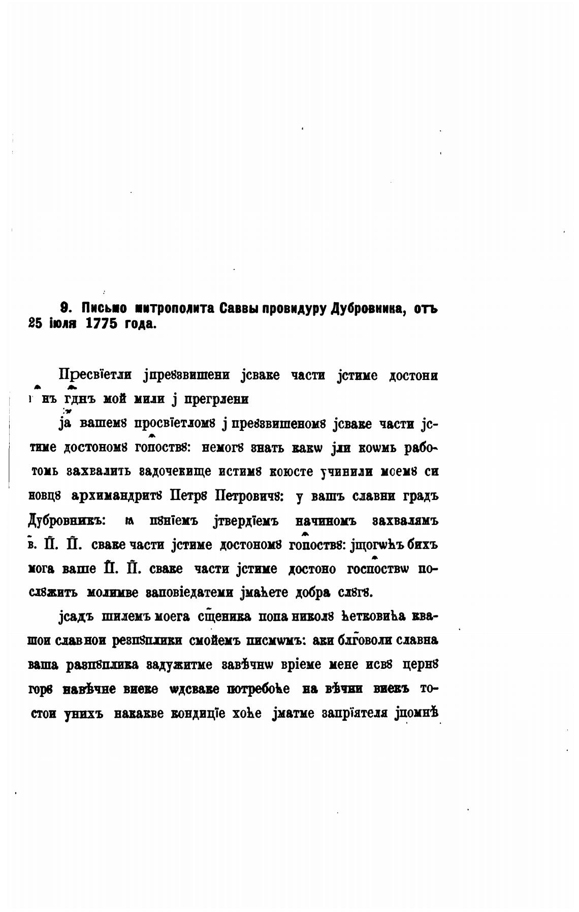 9. Письио птроподита Саввы провидуру Дубровника, отъ