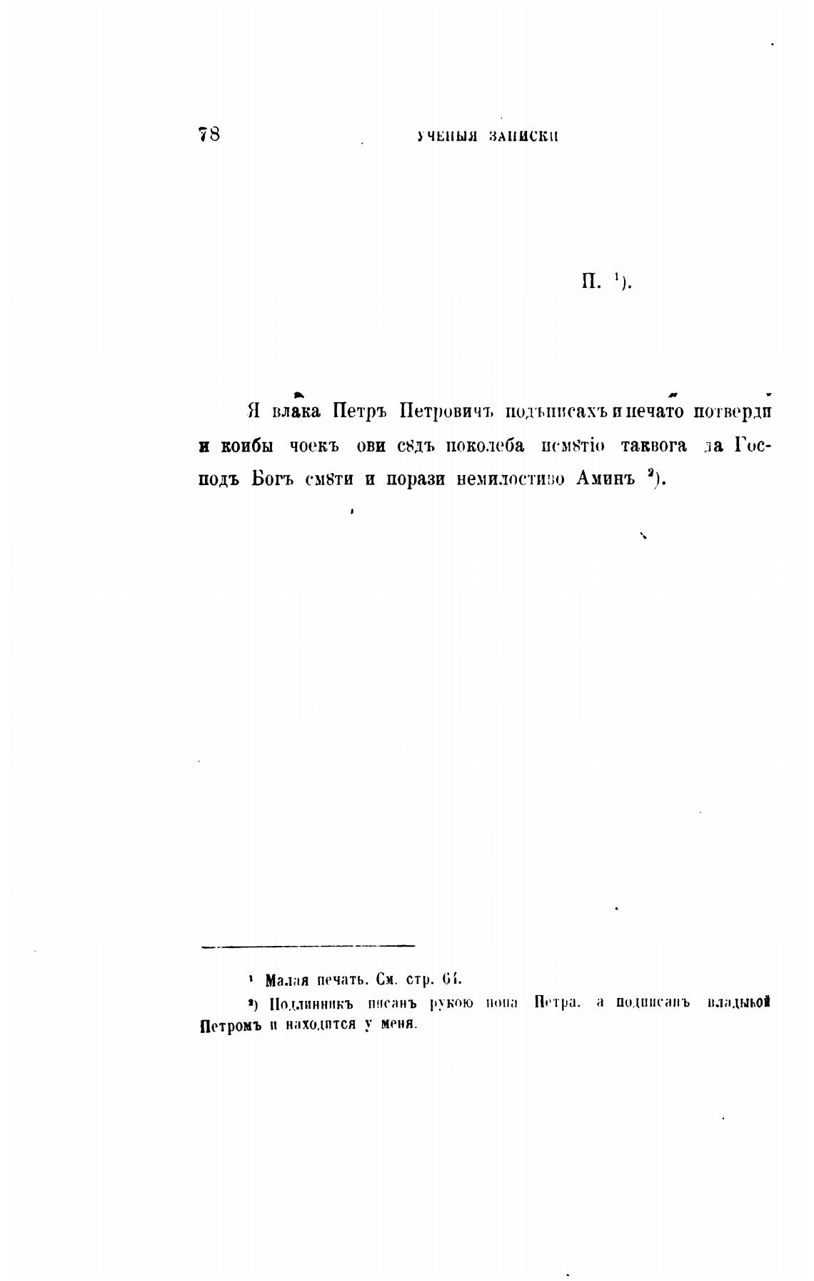 Я влака Петръ Петровичъ подт,писахъ и печато потвердп
