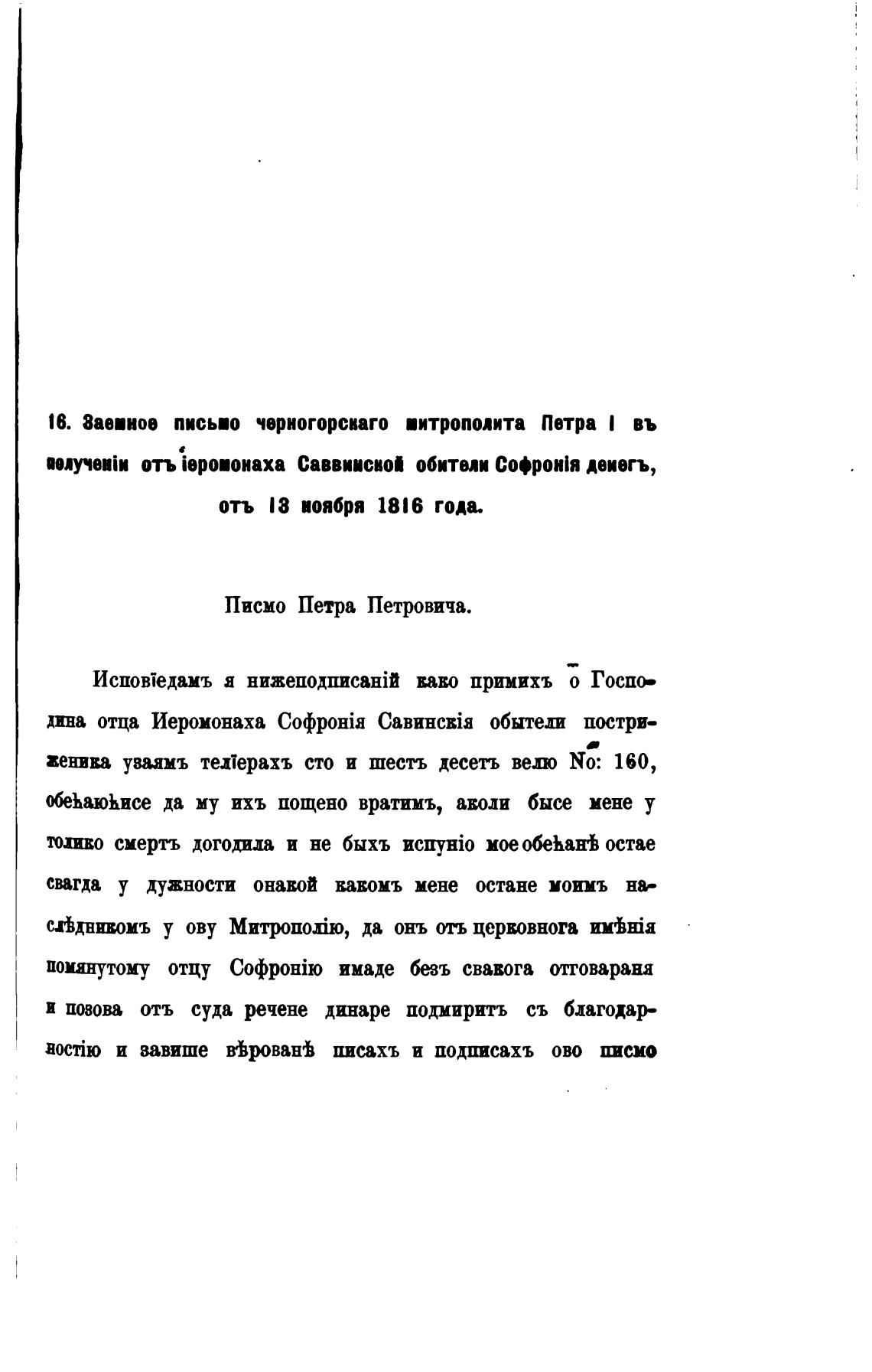 18. 8ае•иое письио черногорсваго •итрополита Петра I въ
