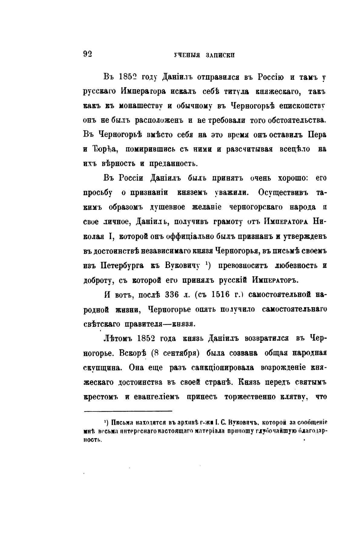 въ независимаго князя Черногорьа, въ письм± своемъ