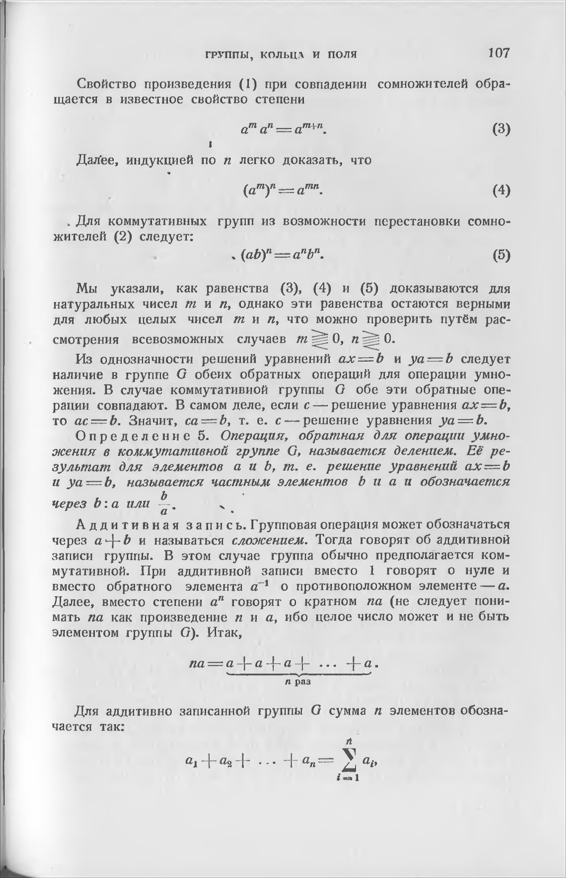 вместо обратного элемента а-1 о противоположном элементе — а.
