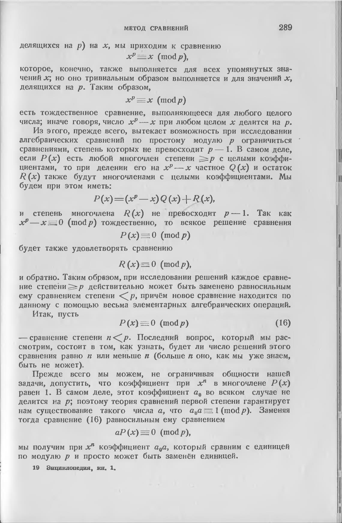 алгебраических сравнений по простому модулю р ограничиться